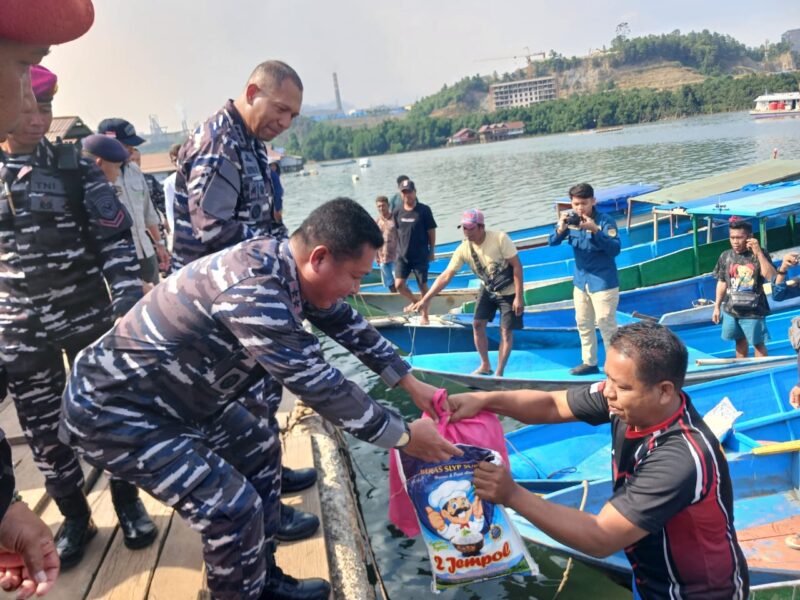 Komandan Kodaeral VI, Laksamana Muda TNI Andi Abdul Aziz, S.H., M.M, membagikan sembako kepada nelayan di Dusun Kurisa , Kecamatan Bahodopi, Kabupaten Morowali, (foto:ist)