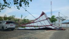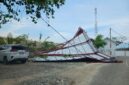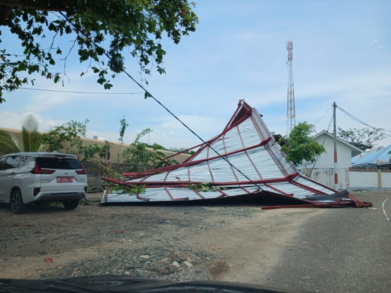 dteksinews,Morowali- Akibat adanya angin kencang malam hari rabu(4/5/2026) , sehingga kanofi tribun stadion di Fonuasingko roboh, Desa Bente, Kecamatan Bungku Tengah, Kabupaten Morowali.