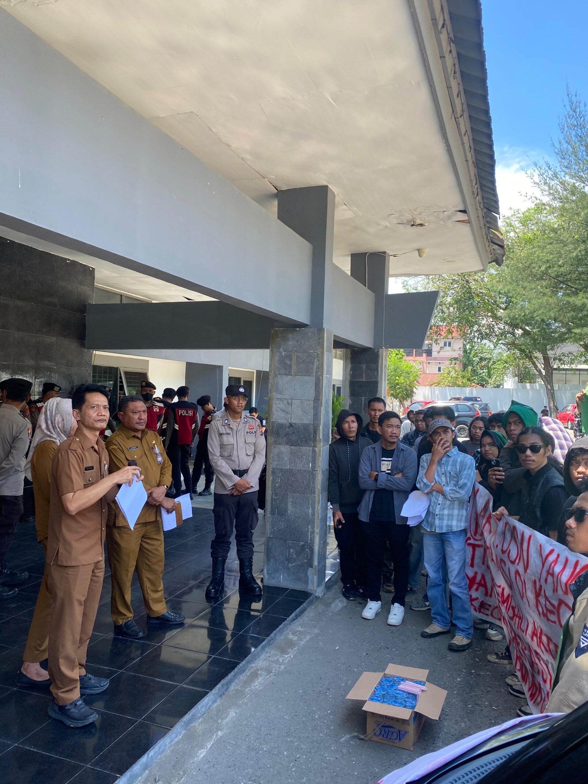 dteksinews, Palu- Aliansi Mahasiswa Bungku Tengah melaksanakan aksi demonstrasi di dinas Energi sumber daya mineral (ESDM) Kota Palu, belum lama ini, Selasa(14/10/2025)