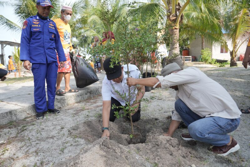 Bupati Morowali Iksan tanam pohon di Pantai Pulau Dua Darat,(foto:ist)
