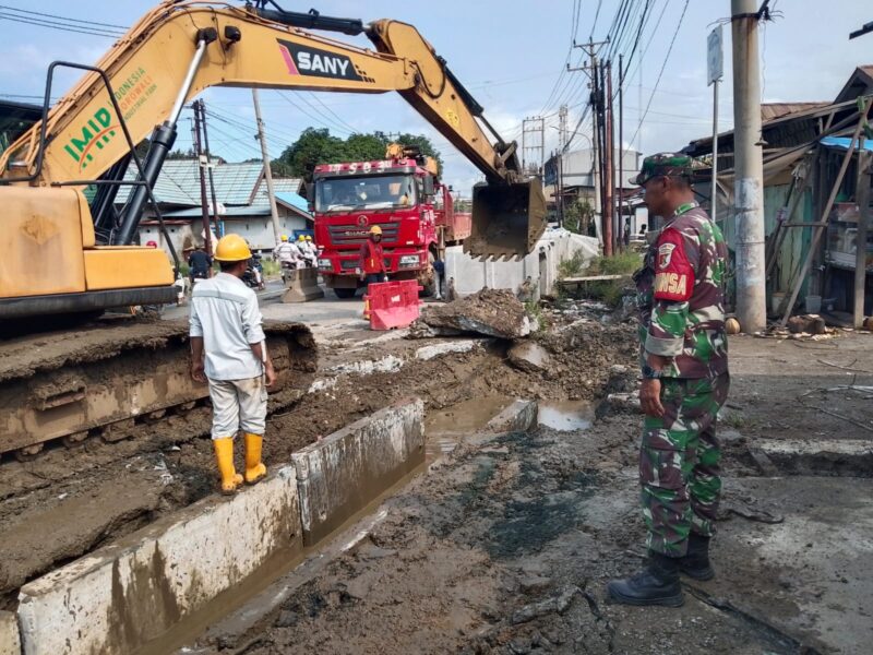 dteksinews, Morowali-Dalam rangka mempercepat proses pembangunan infrastruktur di wilayah Kecamatan Bahodopi, Kabupaten Morowali, Babinsa Koramil 1311-09/Bahodopi Kopka Sumardin melaksanakan pendampingan pemasangan plat beton selokan di sepanjang jalan Trans Sulawesi, Desa Fatufia, Jumat (04/04/2026).