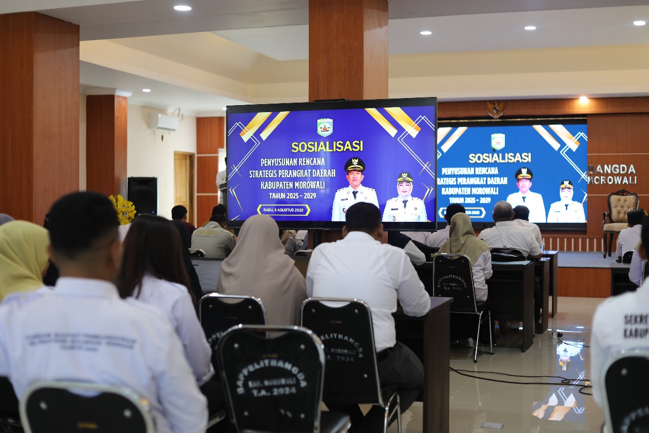 dteksinews, Morowali-Pemerintah Daerah Kabupaten Morowali melalui Badan Perencanaan, Penelitian, dan Pengembangan Daerah (Bappelitbangda) menggelar sosialisasi penyusunan rencana strategis perangkat daerah Kabupaten Morowali tahun 2025-2029, di Aula Bappelitbangda Kompleks Perkantoran Fonuasingko Desa Bente, Kecamatan Bungku Tengah, Rabu (06/08/2025).