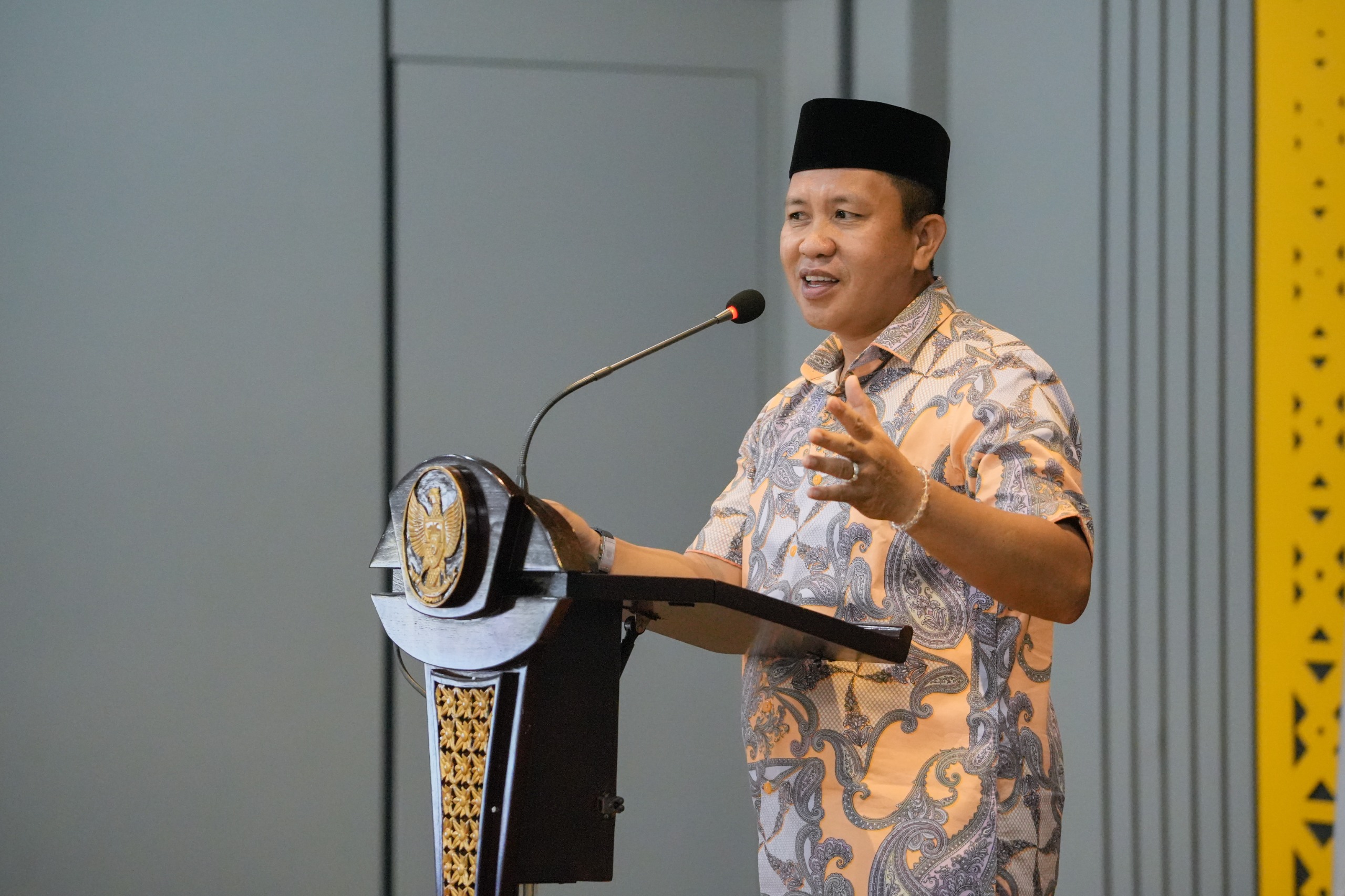 Dalam sambutannya, Bupati Iksan memaparkan pola kerja yang ia terapkan bersama jajarannya selama kurang lebih empat bulan masa kepemimpinannya.