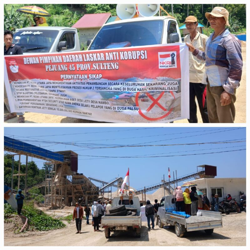 “Untuk itu hari ini, puluhan warga Desa Nambo mengatasnamakan Laskar Anti Korupsi Pejuang 45 Provinsi Sulawesi Tengah melakukan unjuk rasa di depan pintu masuk tambang milik PT RUJ,” ujar Amiruddin