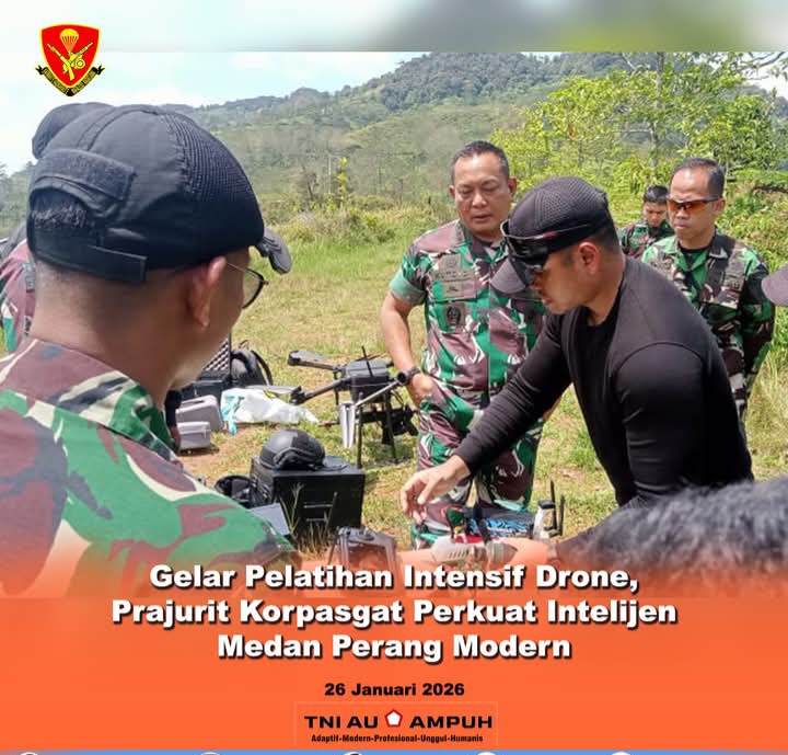 dteksinews, Bandung- Korps Pasukan Gerak Cepat (Korpasgat) TNI AU terus beradaptasi dengan dinamika peperangan modern melalui pemanfaatan teknologi mutakhir. Salah satunya diwujudkan dengan menggelar Pelatihan Intensif Drone guna memperkuat kemampuan intelijen dan daya gempur prajurit di medan operasi berbasis teknologi tanpa awak. Senin (26/01/2026).