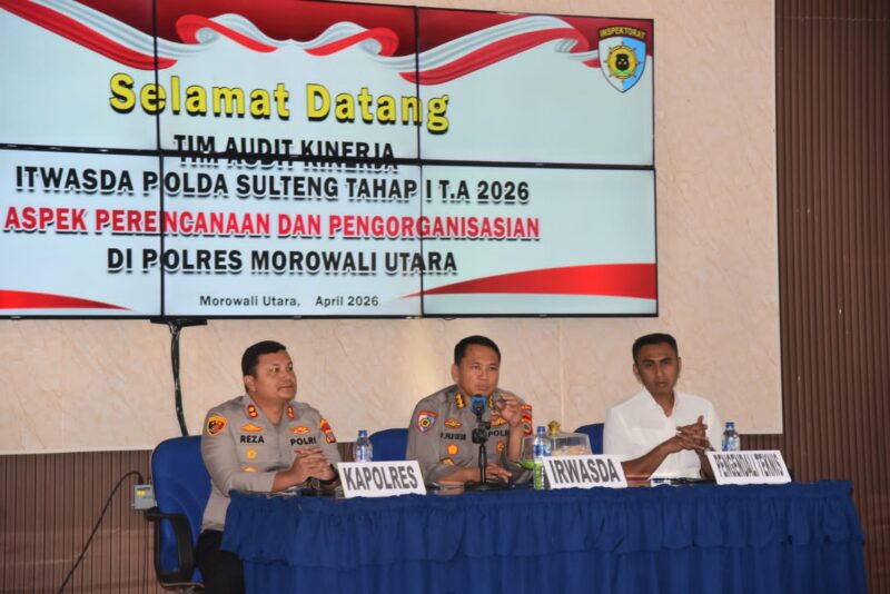 Audit tersebut dipimpin langsung oleh Irwasda Polda Sulteng Kombespol. Purwanto Puji Sutan S.I.K., M.H. selaku Ketua Tim yang didampingi oleh Kombes Pol. Andi Batara Purwacaraka S.I.K, S.H selaku Pengendali Teknis dan Kapolres Morowali Utara AKBP Reza Khomeini, S.I.K., (Senin 20 April 2026)