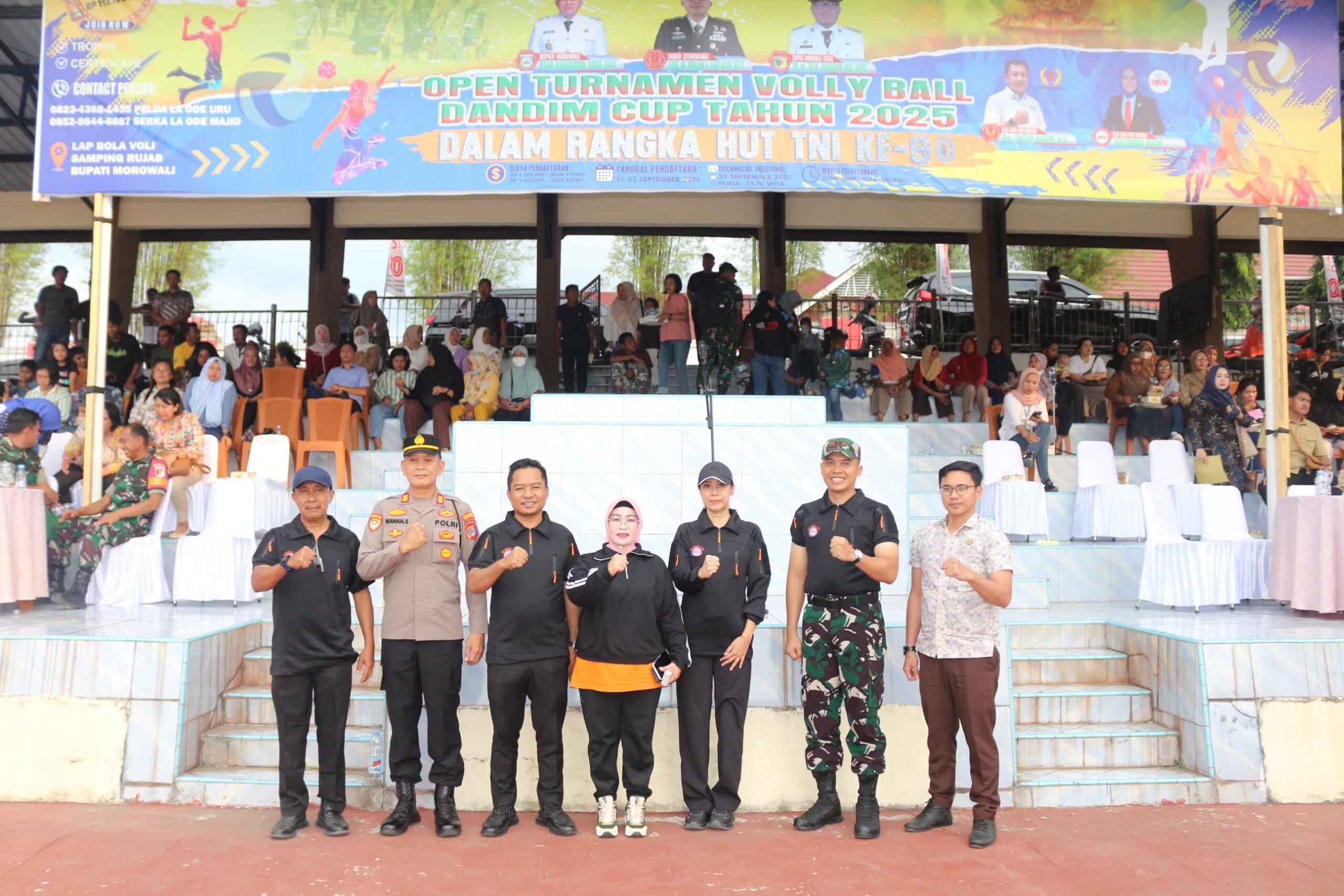 dteksinews, Morowali– Dalam rangka memperingati Hari Ulang Tahun Tentara Nasional Indonesia (HUT TNI) ke-80, Kodim 1311/Morowali menggelar Open Tournament Bola Volly Dandim Cup 2025. Turnamen yang dipusatkan di Lapangan Volly Alun-alun Rumah Jabatan Bupati Morowali, Desa Matansala, Kecamatan Bungku Tengah, dibuka pada Kamis 2 Oktober 2025.