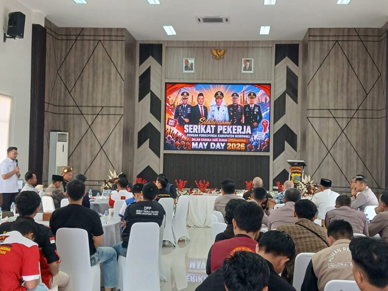 Acara berlangsung di Aula Polres Morowali dan dihadiri oleh Kapolres Morowali AKBP Zulkarnain, Forkopimda,perwakilan perusahaan dan Serikat Pekerja yang ada Kabupaten Morowali. Rabu(20/4/2026)