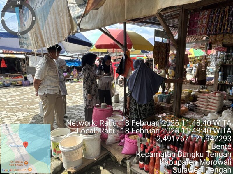 Pemantauan dilakukan di Pasar Sentral Bungku dan Pasar Bente, Kabupaten Morowali, dengan melibatkan Dinas Perindag serta Dinas Ketahanan Pangan / Dinas Pertanian Kabupaten Morowali.