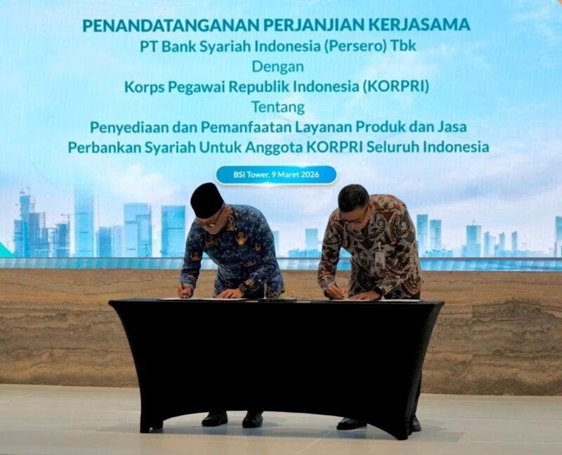dteksinews,Jakarta – Kepala Badan Kepegawaian Negara (BKN) sekaligus Ketua Umum Dewan Pengurus Korpri Nasional, Prof. Zudan, resmi menjalin kerja sama strategis dengan Direktur Utama PT Bank Syariah Indonesia Tbk (BSI), Anggoro Eko Cahyo guna memperluas akses layanan keuangan sekaligus meningkatkan literasi dan inklusi keuangan syariah di kalangan aparatur sipil negara (ASN). Kerja sama tersebut ditandai dengan penandatanganan nota kesepahaman kedua pihak yang turut disaksikan jajaran pengurus Korpri dan manajemen BSI, Senin (09/03/2026) di BSI Tower, Jakarta.