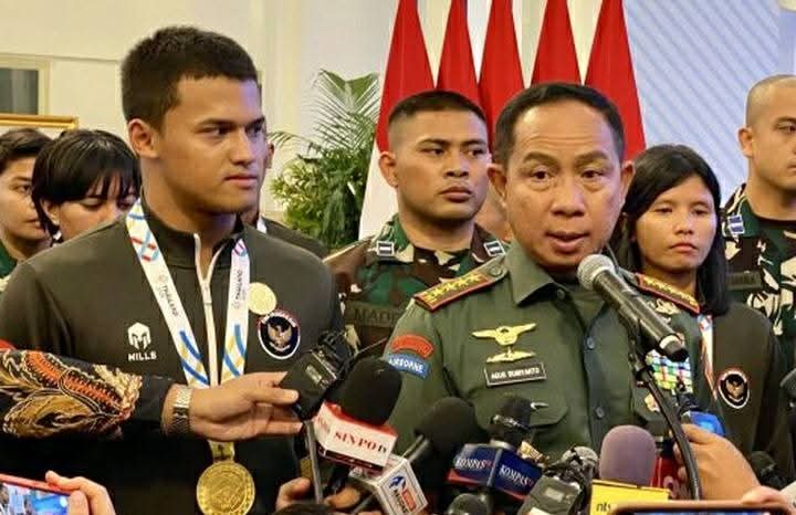 dteksinews, Jakarta- Panglima TNI Jenderal Agus Subiyanto memberikan kenaikan pangkat kepada sejumlah anggota peraih medali di SEA Games 2025. Pengangkatan pangkat tersebut dilaksanakan langsung setelah Presiden Prabowo Subianto memberikan bonus kepada mereka.
