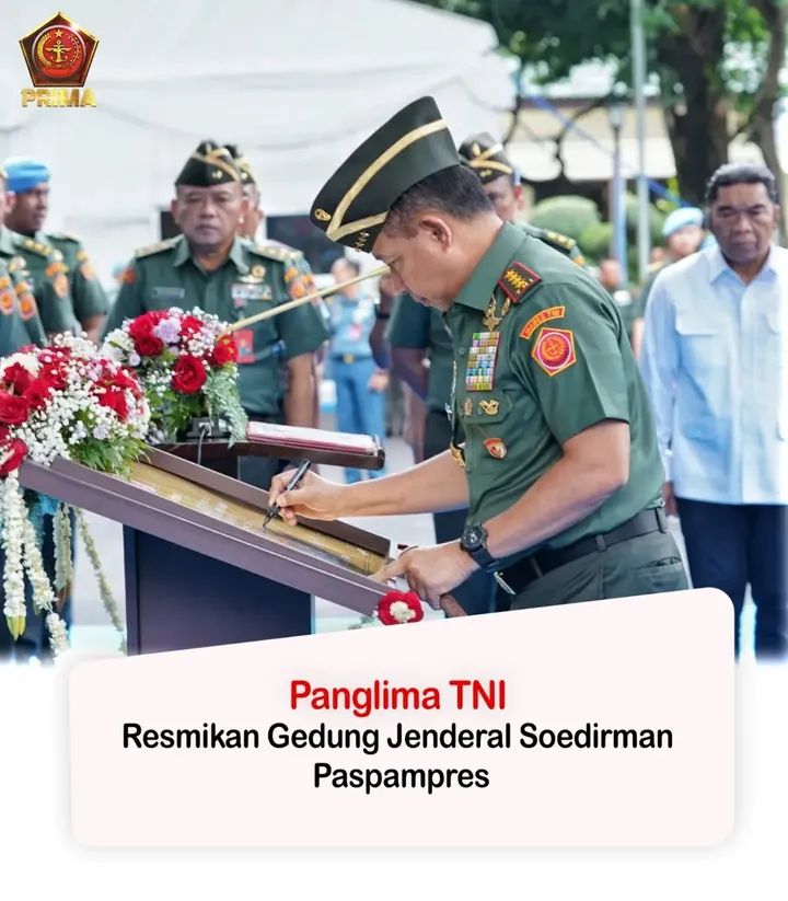 dteksinews, Jakarta- Panglima TNI Jenderal TNI Agus Subiyanto meresmikan Gedung Jenderal Soedirman Paspampres sebagai penanda dimulainya pemanfaatan sarana dan prasarana untuk mendukung pelaksanaan tugas pengamanan VVIP di Mako Paspampres, Jalan Tanah Abang II Nomor 6, Jakarta Pusat, Rabu (24/12/2025).
