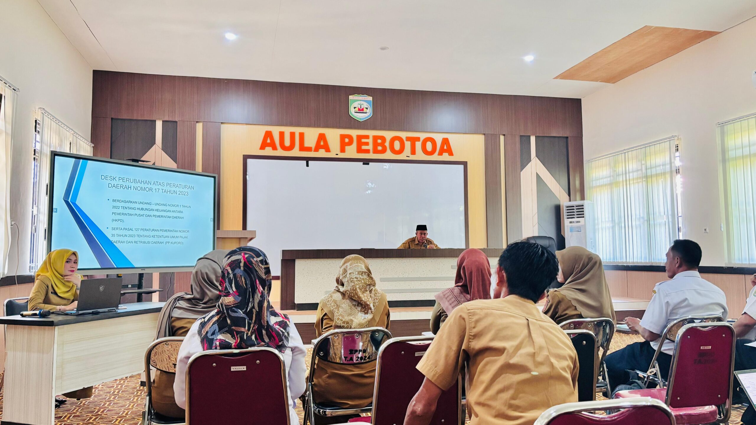 dteksinews,Morowali-Menyikapi perubahan atas Peraturan Daerah (Perda) Nomor 17 Tahun 2023 tentang Pajak dan Retribusi Daerah, Pemerintah Daerah Kabupaten Morowali melalui Badan Pengelolaan Pendapatan Daerah (Bappenda) menggelar Rapat Desk bersama Organisasi Perangkat Daerah (OPD) pemungut pajak dan retribusi, Selasa (7/10/2025) bertempat di Aula Kantor Bappenda Morowali.