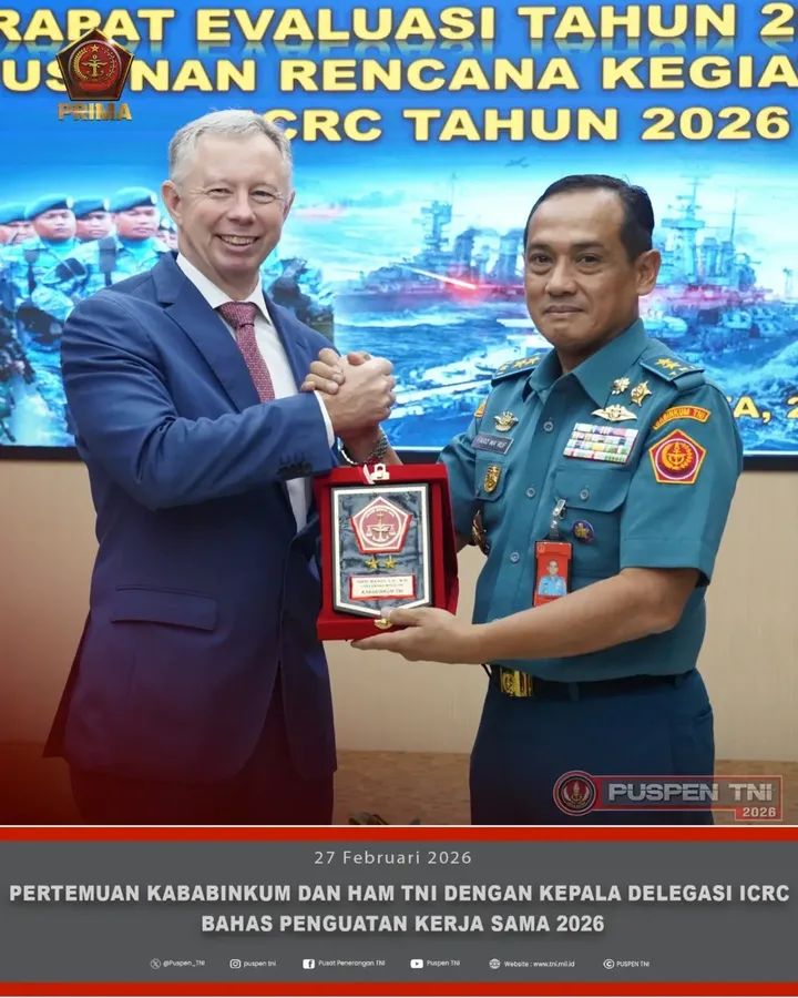 dteksinews, Jakarta-Kepala Badan Pembinaan Hukum (Kababinkum) dan HAM TNI, Laksamana Muda (Laksda) TNI Farid Ma’ruf menerima Head of the ICRC Regional Delegation for Indonesia and Timor-Leste, Martines Abel Wiliem de Boer, dalam rangka penguatan kerja sama implementasi Hukum Humaniter Internasional (HHI) dan Hak Asasi Manusia (HAM) di lingkungan TNI. Pertemuan bertempat di Mabes TNI, Jakarta Timur. Kamis (26/02/2026).
