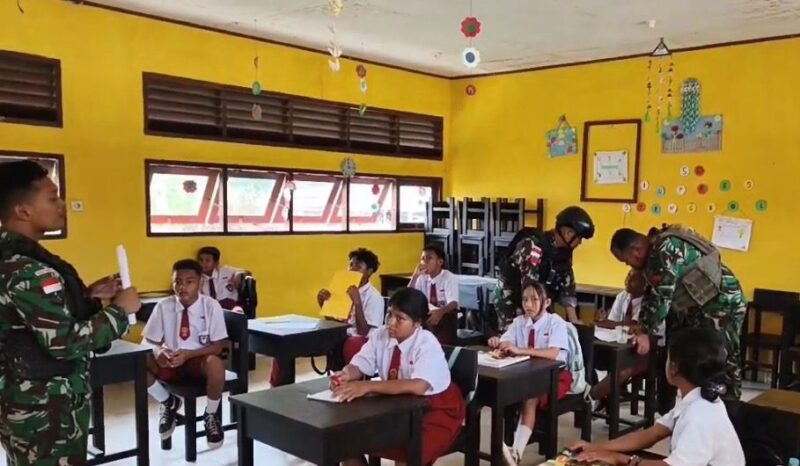 Prajurit Satgas Yonif 410/ Alugoro Mengajar Siswa SD, Bentuk Karakter Generasi Penerus Bangsa