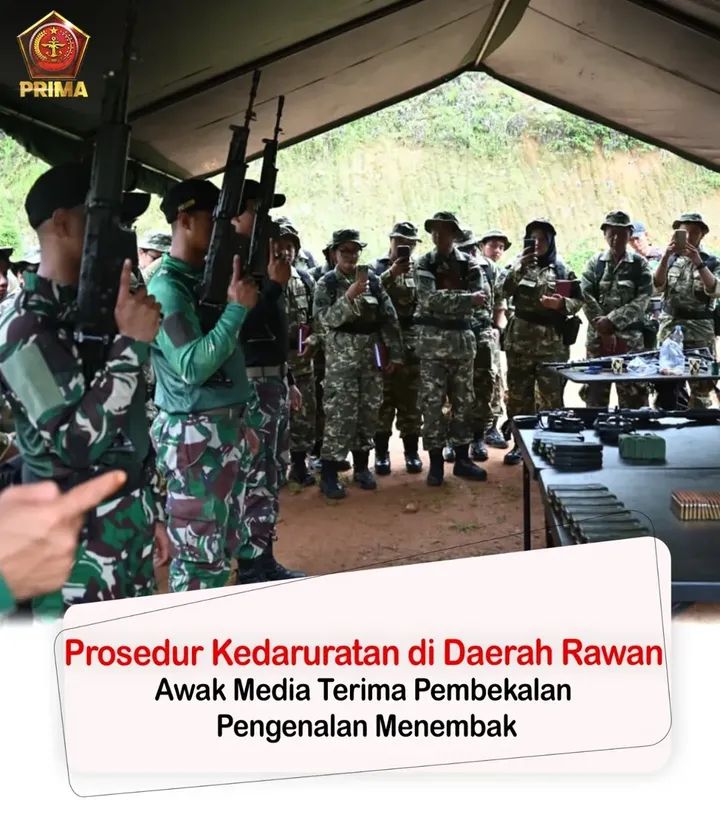 dteksinews, Kerawang-Kementerian Pertahanan Republik Indonesia (Kemhan RI) melanjutkan rangkaian Pembekalan Awak Media tentang Prosedur Kedaruratan di Daerah Rawan Tahun Anggaran 2025 dengan pemberian materi Pengenalan Menembak, yang dilaksanakan di Resimen Latihan dan Pertempuran (Menlatpur) Kostrad “Sanggabuana”, Karawang, Jumat (19/12/2025).