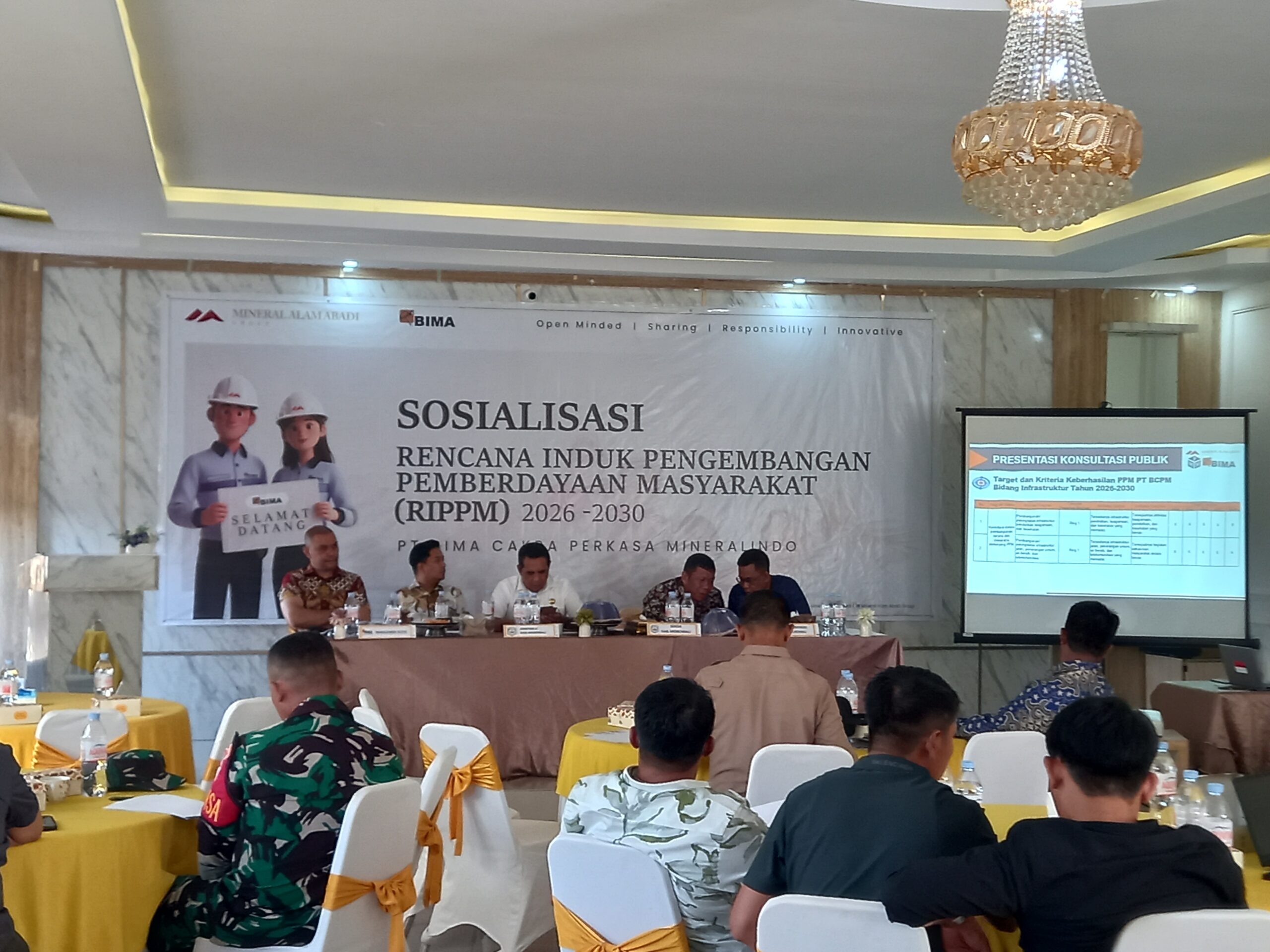 Sosialisasi RIPPM dilaksanakan Grand Qafia Hotel desa Bahomohoni, Kecamatan Bungku Tengah, dan dihadiri oleh Assisten 2 Drs.Emil,Kabag Ekonomi Anwar Saimu, ST,M.Sc,Sekretaris Bappelitbangda Muh Rais Lamusa,ST,MM, Dereksi PT.BCPM Arnoldus Wea, Manajemen Site PT BCPM Ramandona, beberapa Kepala OPD,Camat ,Kepala Desa Laronae ,Kepala Desa Buleleng dan hadirin undangan.Jumat(3/10/2025) .