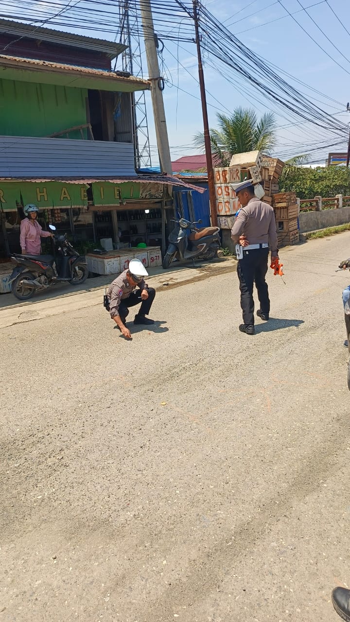 Sat Lantas Polres Morowali olah tempat kejadian kecelakaan lalulintas di jalan trans Sulawesi, Bahodopi,(foto:ist)
