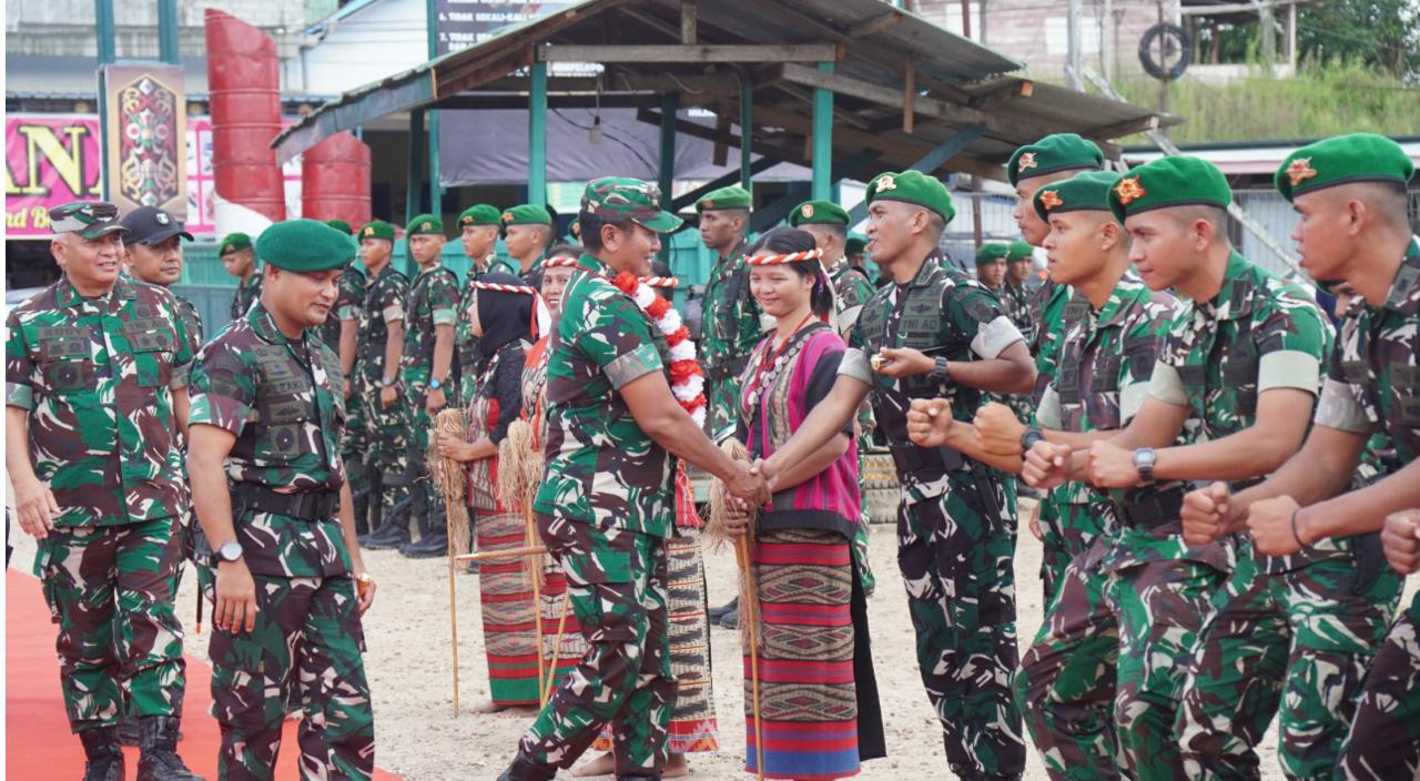 Danbrigif TP 85/BTC Kolonel Inf Alzaki, S.E., M.B.A., M.M.A.S., bersama para Danyonif, Dandim 0912/Kbr, perwira, dan ratusan prajurit dari Brigif TP 85/BTC, Yonif TP 827/MCY, dan Kodim 0912/Kbr menyambut kedatangan Danpussenif dengan rangkaian upacara militer dan tradisi. Diawali laporan Danbrigif, pengalungan bunga, laporan pos jaga dan hormat jajar, acara dilanjutkan dengan tari dan nyanyian penyambutan, foto bersama, penaburan benih ikan, serta penanaman pohon di lingkungan pangkalan.