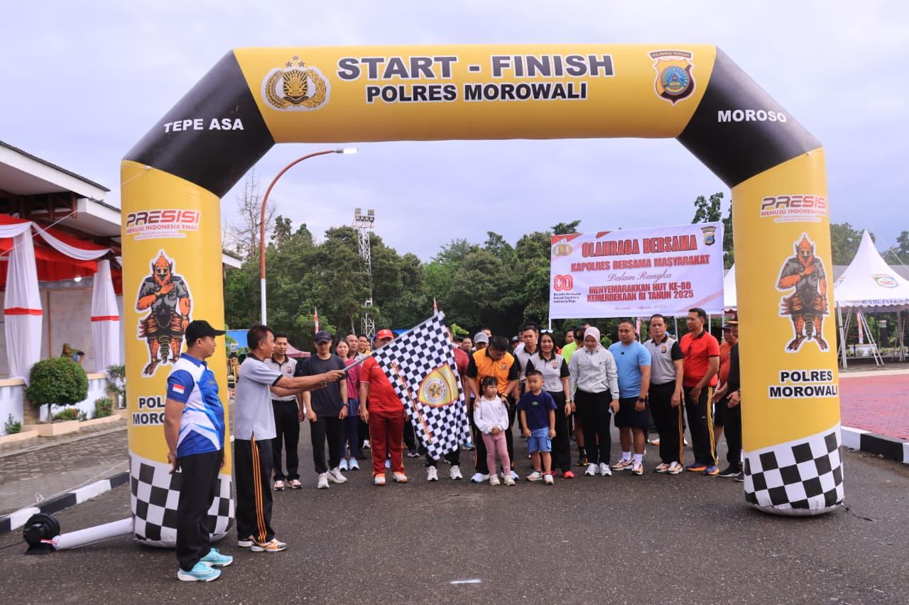 dteksinews, Morowali – Dalam rangka menyambut Hari Ulang Tahun ke-80 Kemerdekaan Republik Indonesia, Polres Morowali menggelar olahraga bersama yang diikuti Polres dan jajaran, Bhayangkari, serta masyarakat, bertempat di Alun alun rumah jabatan Bupati Morowali pada Jumat (15/8/2025).
