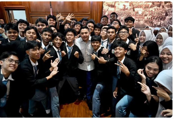 Sekretaris Kabinet (Seskab) Teddy Indra Wijaya bersama siswa-siswi SMKN 19 Jakarta ,(foto: dok Seskab)