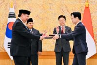 Presiden Prabowo menyaksikan pengumuman antara Indonesia dan Republik Korea, Teken 10 Nota Kesepahman ( Memorandum of Understanding),(foto: dok pribadi Teddy) dteksinews, Republik Korea,…