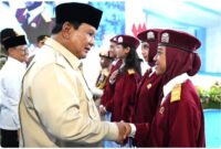 Presiden Prabowo Subianto, memberikan ucapan selamat kepada salah satu siswi Sekolah Rakyat di Banjarmasin, Kalimantan Selatan,(foto:ist) dteksinews, Banjarmasin-Prabowo Subianto meresmikan 166 Sekolah…