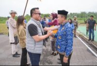 Bupati Morowali Utara, Delis Julkarson Hehi (kiri),memberikan ucapan selamat kepada Bupati Morowali Iksan Baharudin Abdul Rauf atas kinerjanya,(foto:ist) dteksinews,Morowali- Momen penerbangan perdana Sriwijaya…