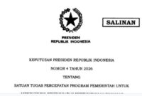 Keppres nomor 4 tahun 2026 tentang Satgas Percepatan Program Pemerintah untuk Mendukung Dukung Peningkatan Pertumbuhan Ekonomi,(FOTO: IST) dteksinews, Jakarta- Dalam rangka mengakselerasi program…
