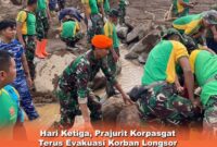 Hari ketiga, Prajurit Korpasgat terus evakuasi korban longsor di Cisarua,(foto:ist) dteksinews, Bandung-Prajurit Korpasgat terus melaksanakan evakuasi korban longsor di wilayah Cisarua yang memasuki…