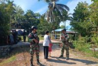 Satgas Pamtas RI-PNG Kewilayahan Yonif 410/ALG Pos Teluk Arguni melaksanakan kegiatan Anjangsana di kampung Bofuwer, Distrik Teluk Arguni , Kab. Kaimana, Prov Papua Barat,(FOTO:…