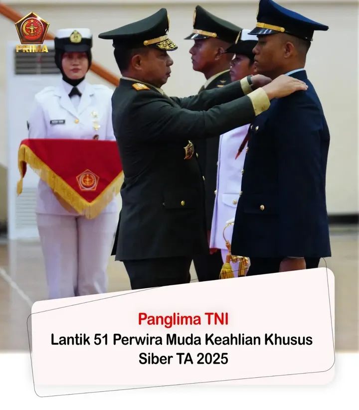 dteksinews, Jakarta-Panglima TNI Jenderal TNI Agus Subiyanto melantik 51 Perwira Muda Dikmapa PK TNI Keahlian Khusus Siber TA 2025 di GOR Ahmad Yani, Mabes…
