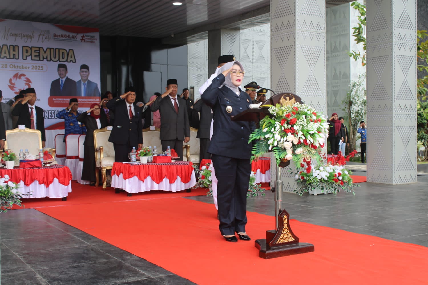 Wakil Bupati Morowali, Iriane iliyas bertindak sebagai inspektur upacara dan membacakan naskah Sumpah Pemuda. Dalam amanatnya, beliau menyampaikan pesan penuh semangat kebangsaan serta harapan bagi generasi muda Indonesia.