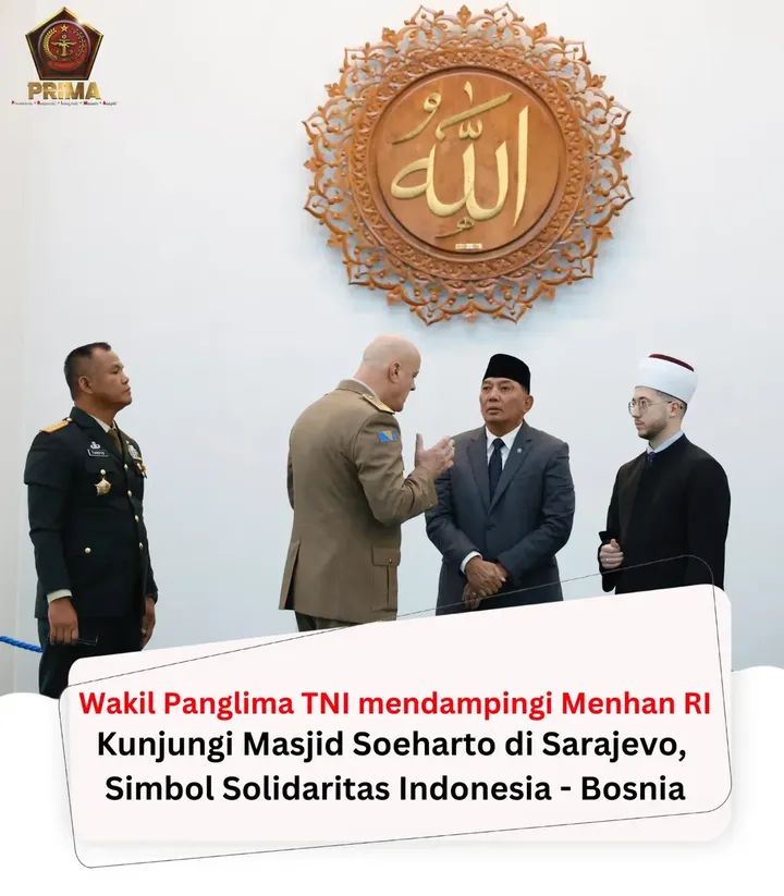 dteksinews, Bosnia- Wakil Panglima TNI Jenderal TNI Tandyo Budi R mendampingi Menteri Pertahanan Republik Indonesia (Menhan RI) Syafrie Sjamsuddin kunjungi Masjid Soeharto di Sarajevo, Bosnia dan Herzegovina, Minggu (11/1/2026). Kunjungan ini merupakan bagian dari rangkaian pertemuan bilateral dengan Menteri Pertahanan Bosnia dan Herzegovina, yang membahas penguatan kerja sama pertahanan kedua negara.